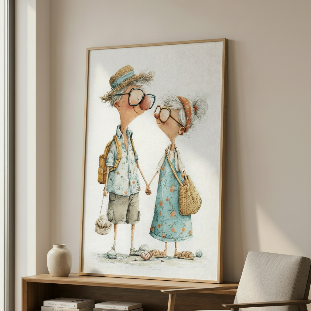 Elderly Couple Holding Hands Canvas Art