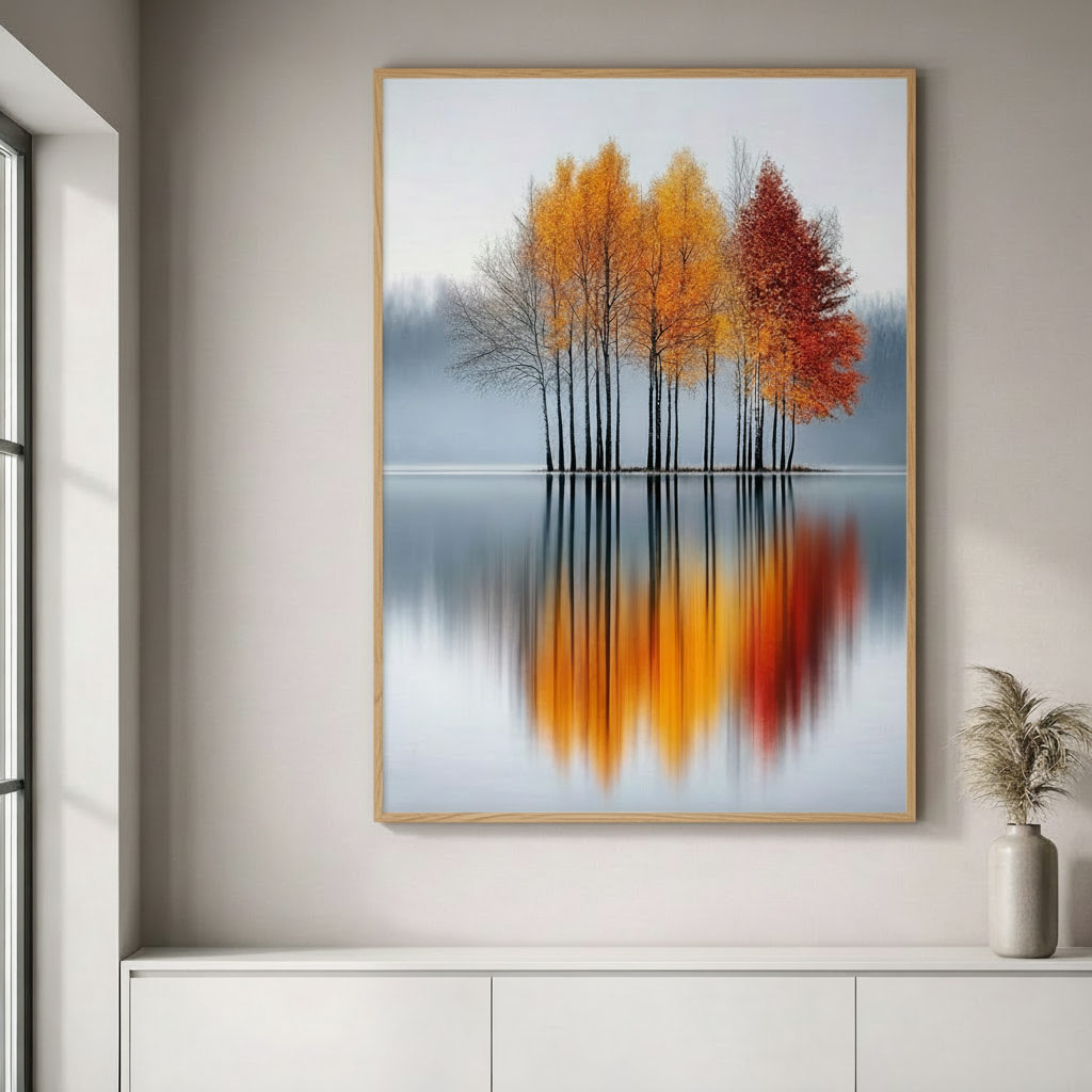 Autumn Trees Reflection Canvas Wall Art