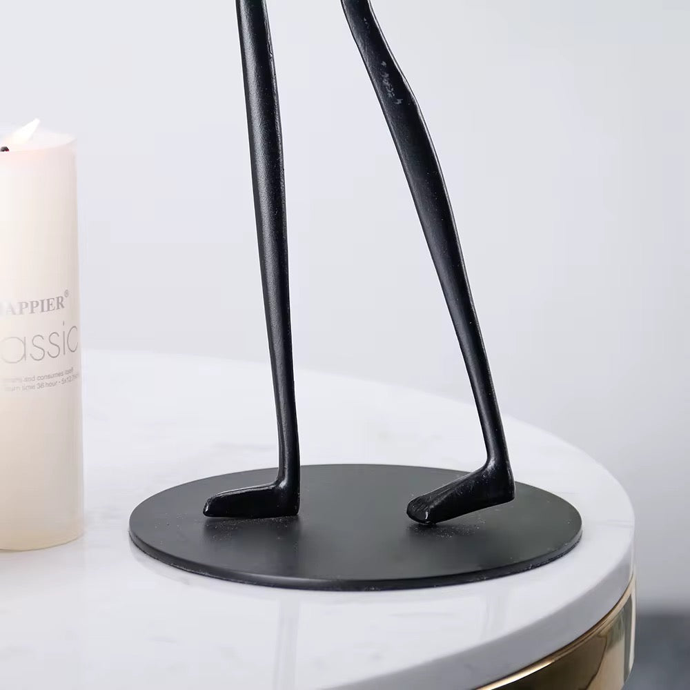 Elevate your décor with this striking abstract sculpture featuring a slender black figure carrying three polished gold spheres. Its modern artistic design adds sophistication, movement, and a bold visual statement to consoles, shelves, and office spaces.