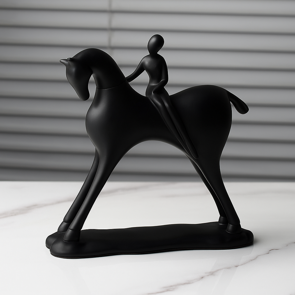 Add modern elegance to your décor with this pair of minimalist horse rider sculptures. Featuring smooth matte finishes in black and white, these sleek silhouettes bring balance, style, and artistic refinement to consoles, shelves, and office displays.