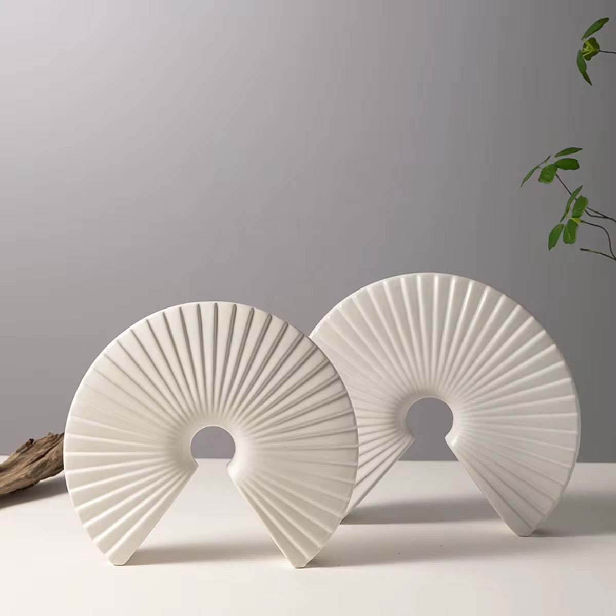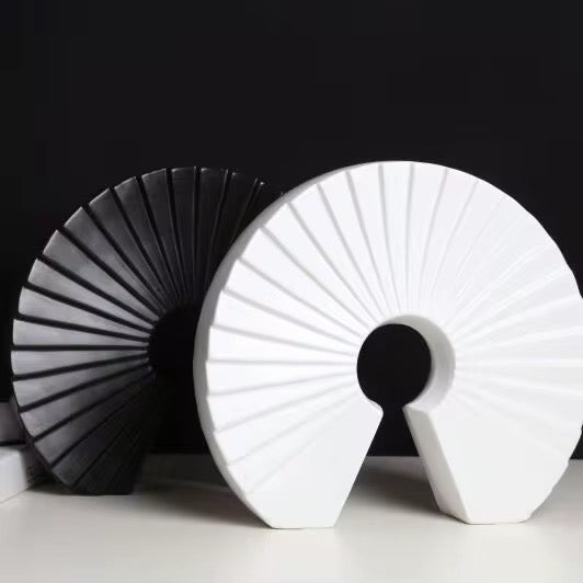 Enhance your décor with this modern geometric arch sculpture, featuring bold fan-like ridges and a minimalist black-and-white design.
