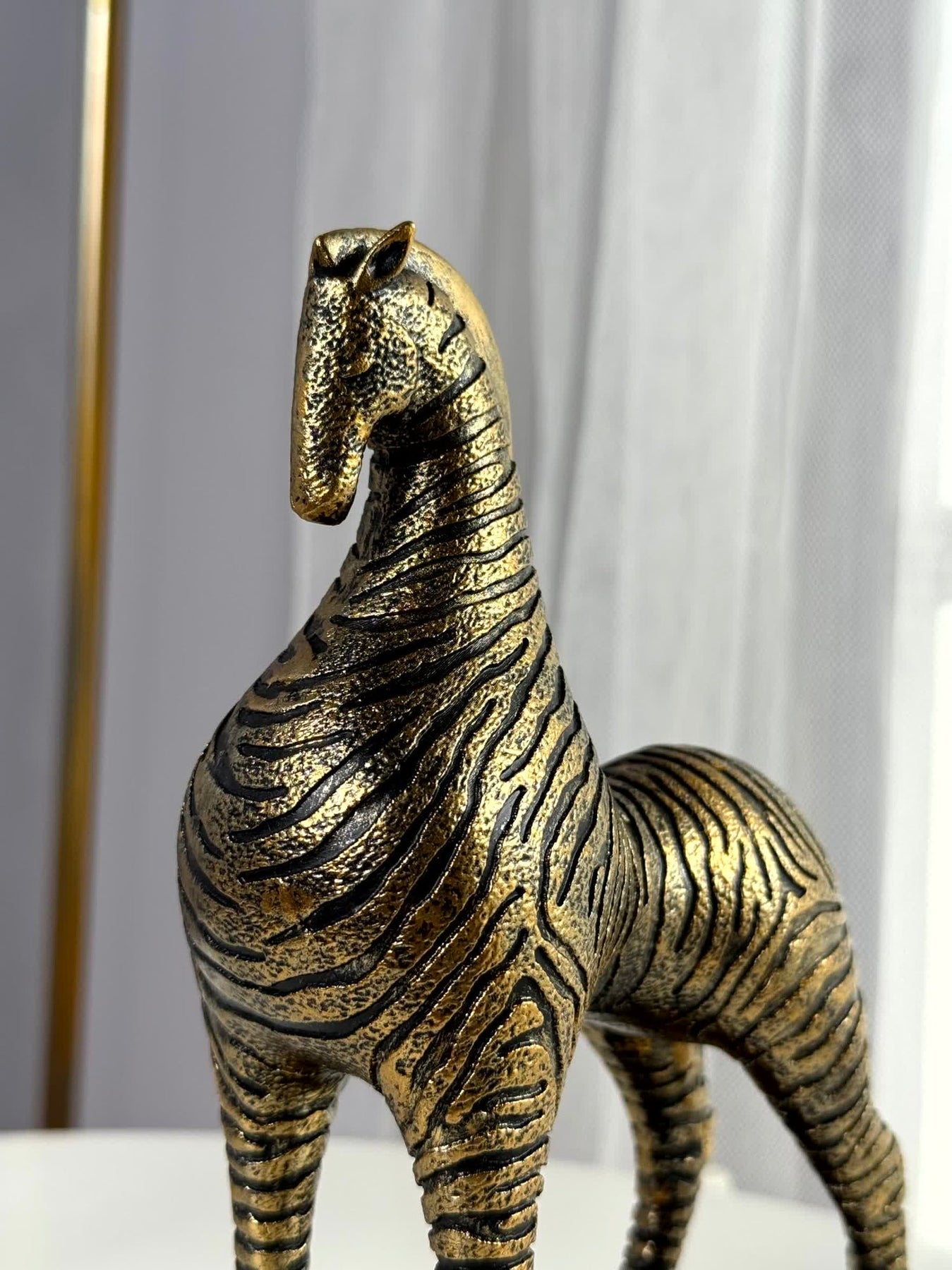 Elegant gold-finish zebra horse figurine on a black base — a striking tabletop accent for modern interiors.
