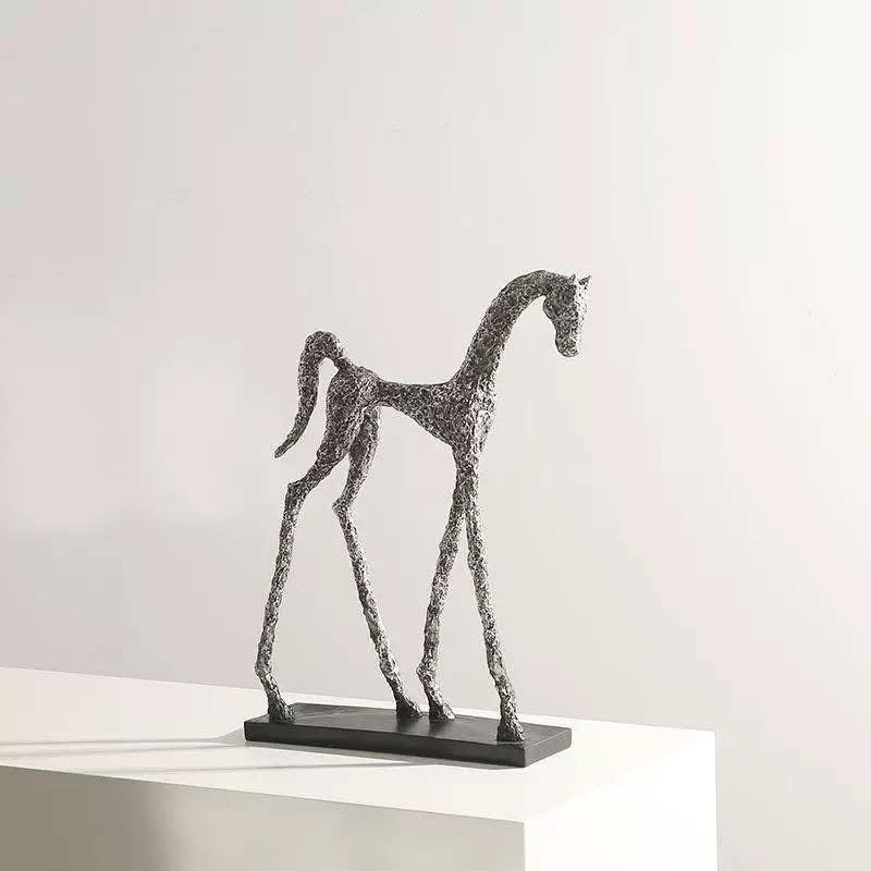Artistic abstract horse sculpture with elongated form, ideal as a statement decor piece.