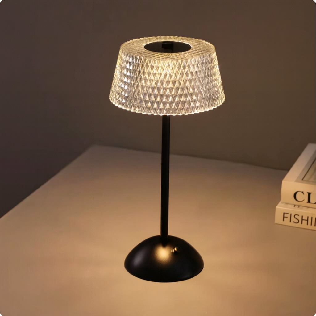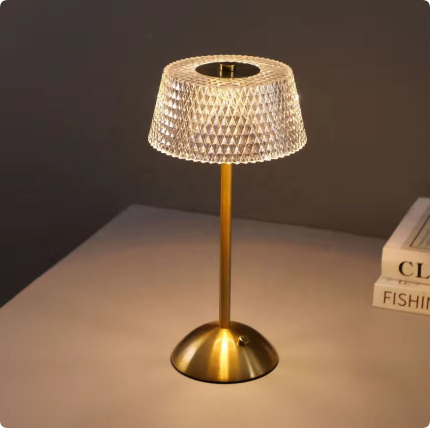 Modern Rechargeable Table Lamp with Glass and Wooden Base