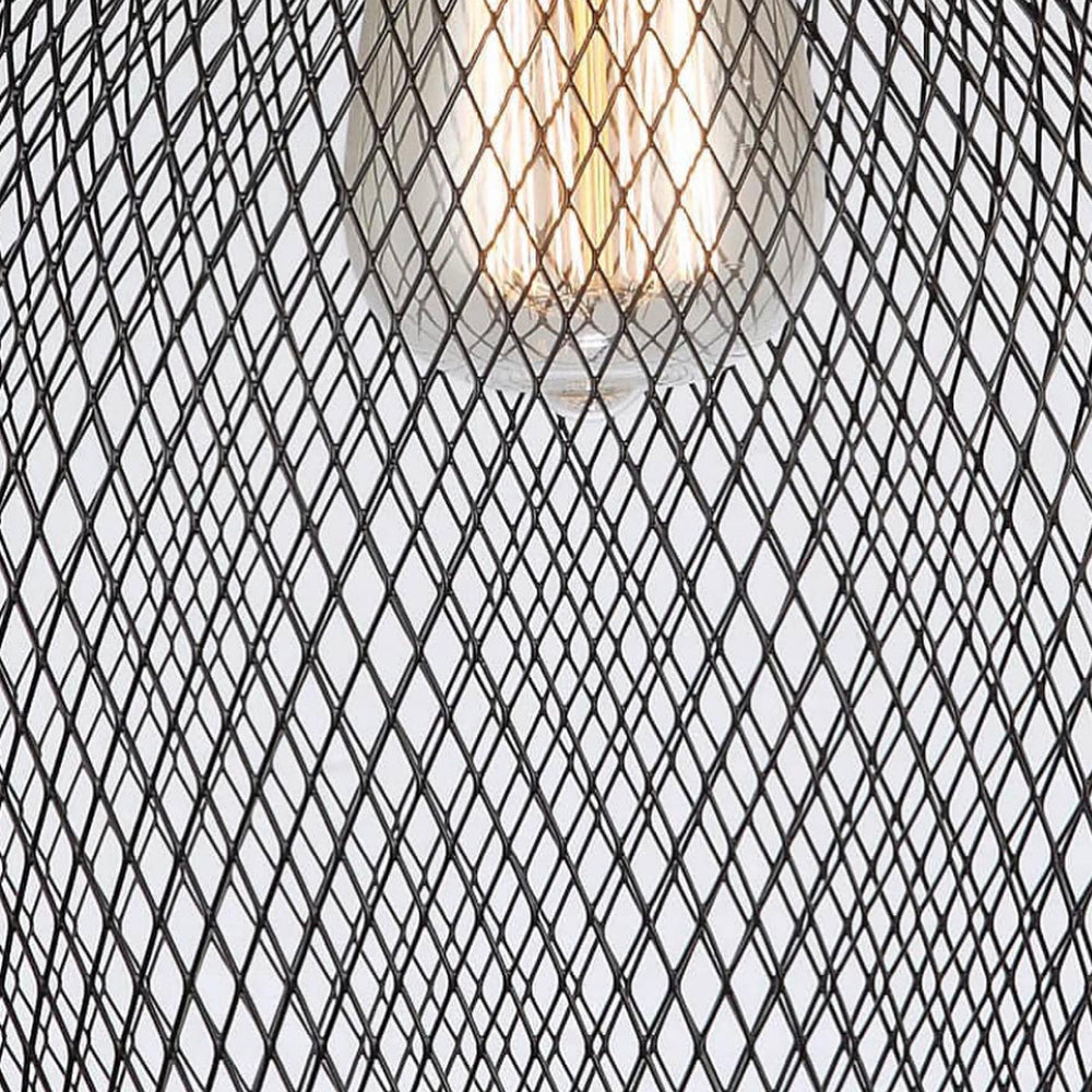 This industrial pendant light features a sleek black wire mesh shade, perfect for creating a warm and industrial ambiance in dining rooms or kitchens.