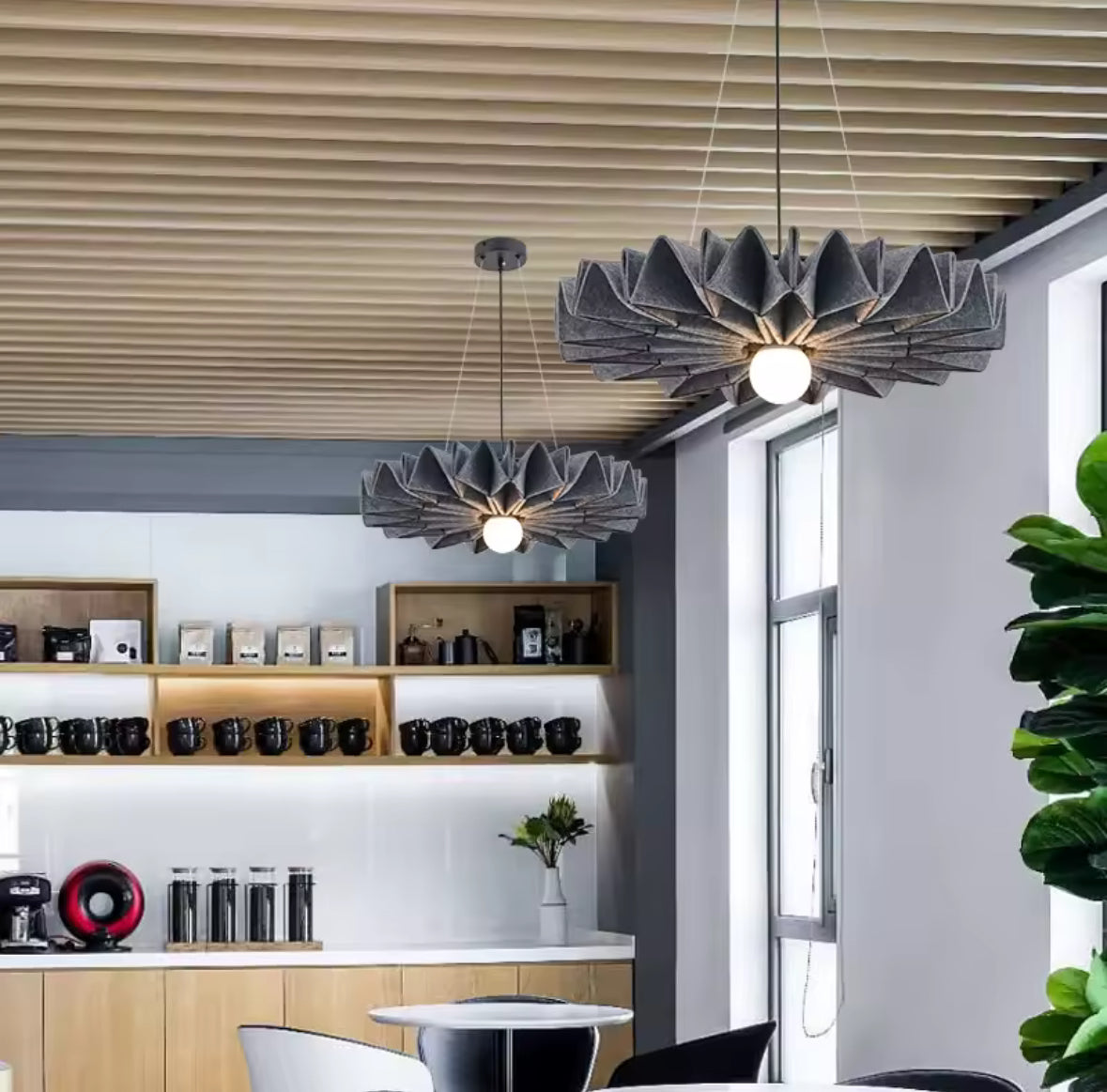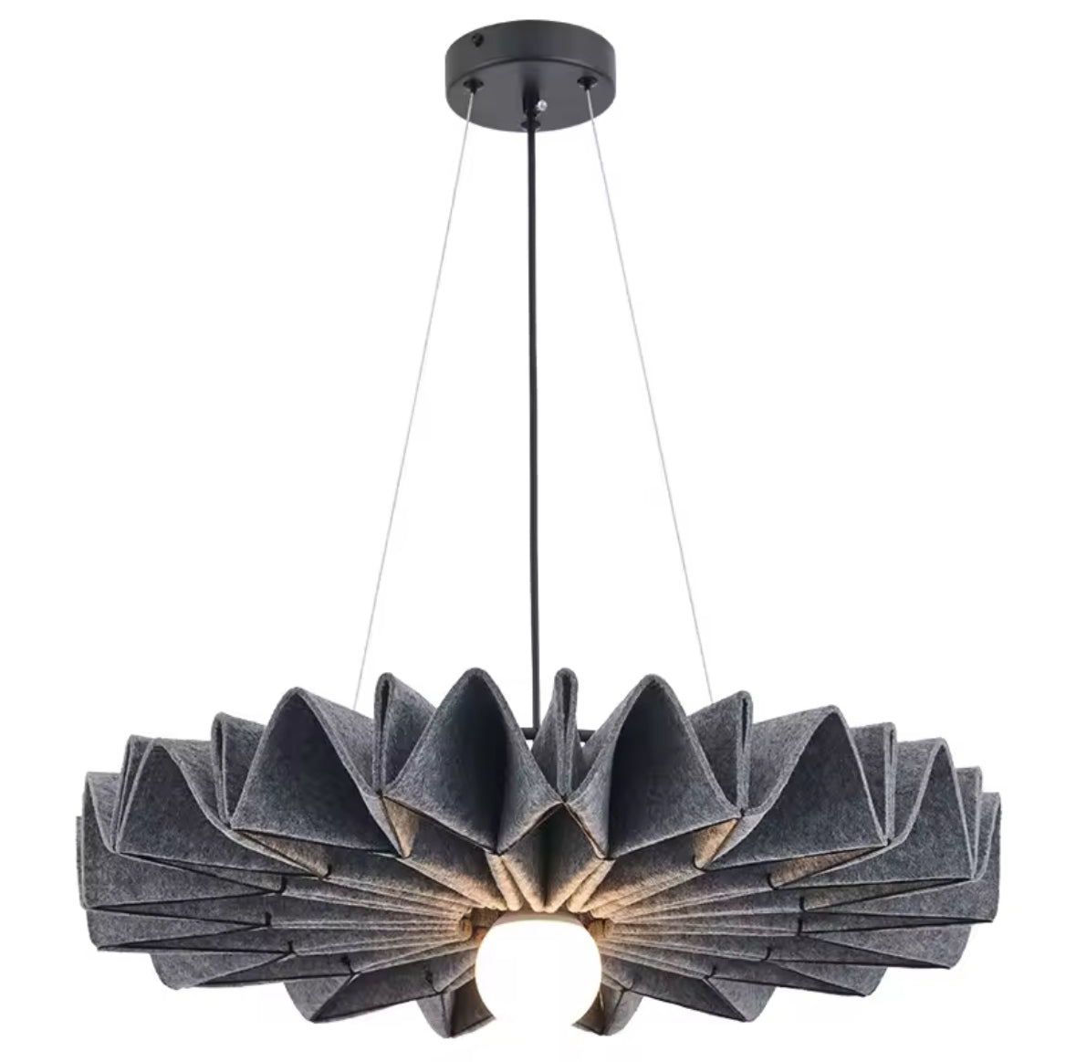 Contemporary pendant lights with artistic, pleated designs in dark and light finishes. A bold statement piece ideal for stylish modern interiors.