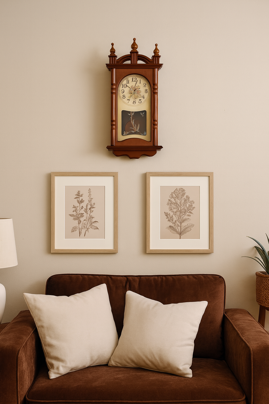 Elegant classic wooden wall clock with intricate detailing and a timeless design. Perfect for adding sophistication and warmth to your living room, office, or hallway.